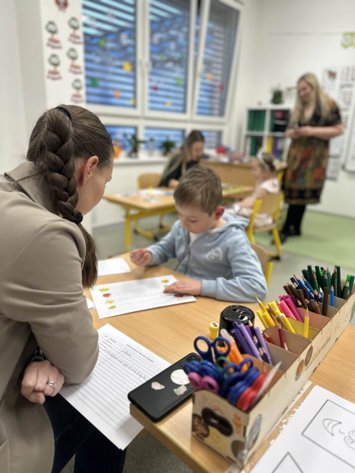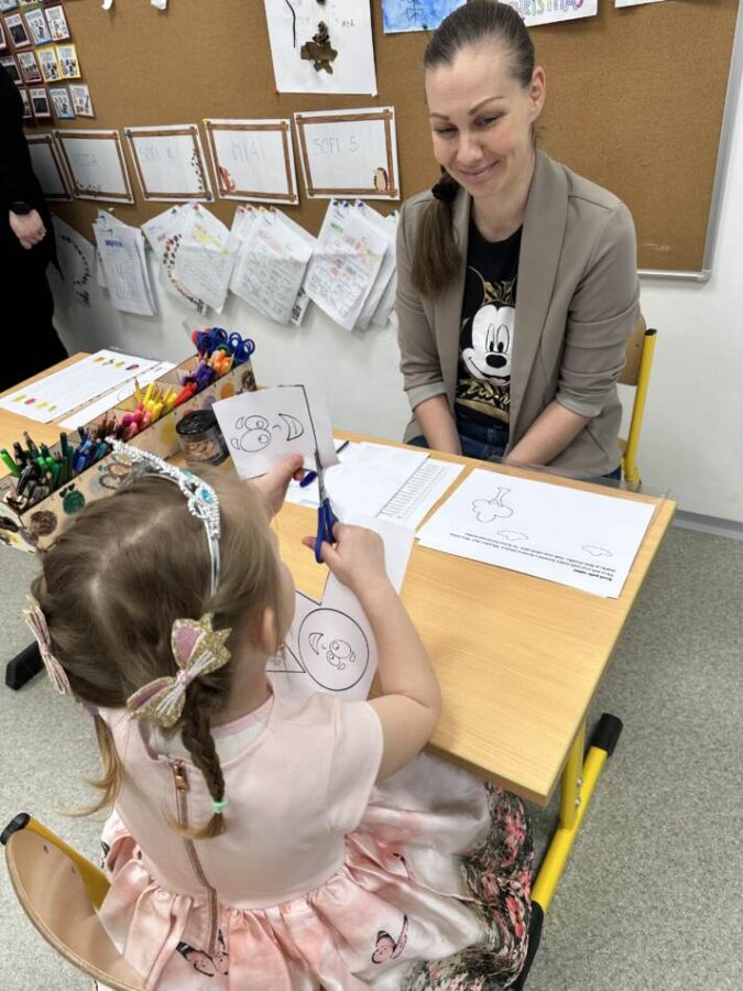 Děti během zápisu procházejí jednotlivými stanovišti, kde ukazují, co už zvládají – od jednoduchých úkolů až po základní sebeobsluhu. Nejde o zkoušku, ale o přirozené ověření jejich připravenosti.